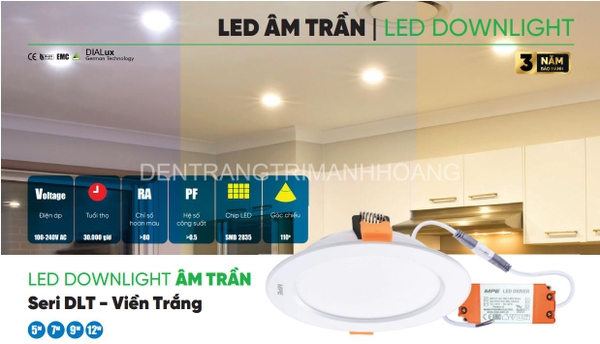 Âm trần LED downlight viền trắng 9w/Trắng D110 MPE